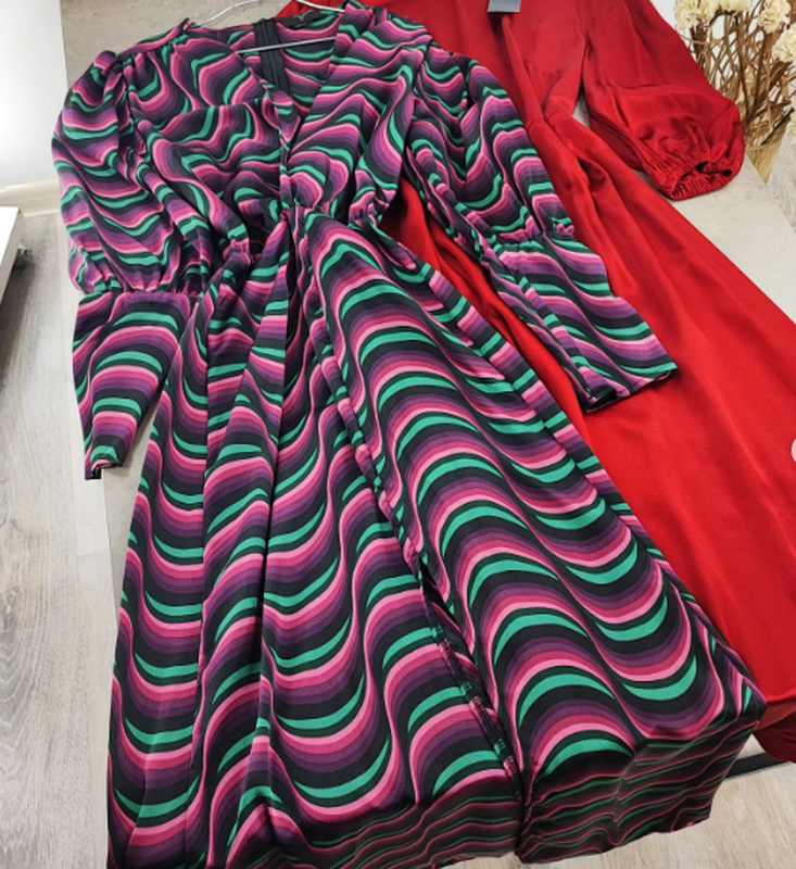 Легкий, приємний сатин, не тягнетьсяРозмір UK10 (S/M)Довжина 133 смПівобхват грудей 47 смПівобхват талії 32 см, ззаду на резинціПівобхват бедер 52 смДовжина рукава 60 смШирина плечей 39 смСтан нової речі