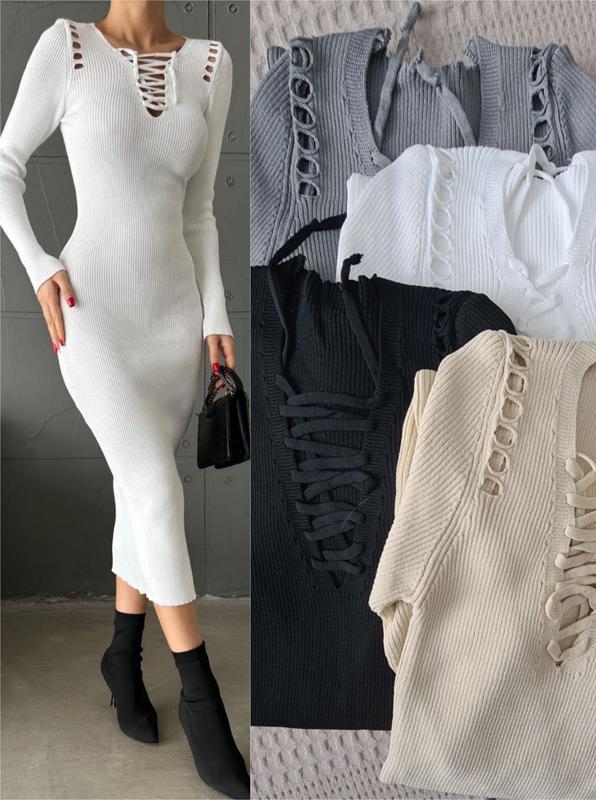 Такие изысканные платья с шнуровкой премиум качество(производство Туречинное 🇹🇷)ткань машинная вязка трикотажотлично тянутсяразмер oversize 40/48длина: 121 см рукав 59 смцвет:серый,белый,черный,айвори