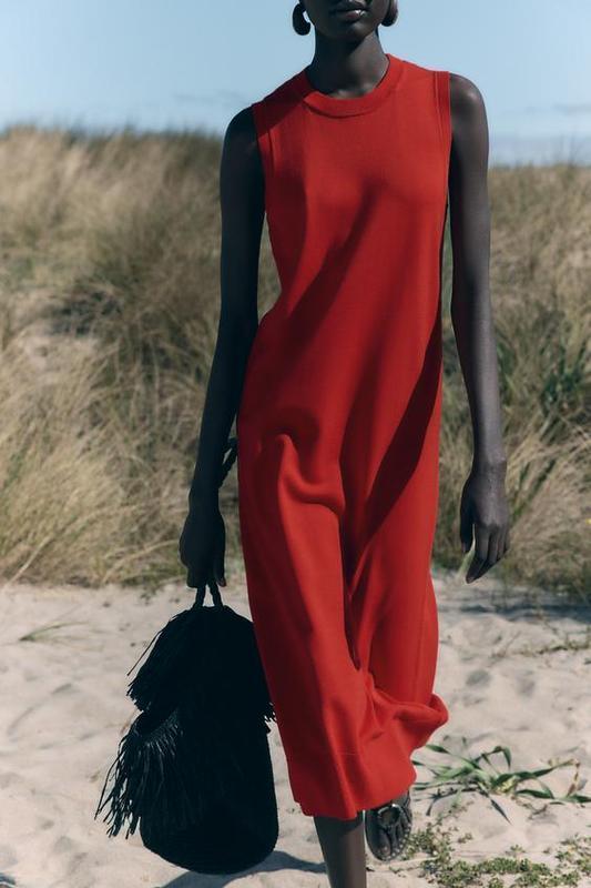 Платье с круглым воротником, окантовкой в рубчик и без рукавов.РАЗМЕР S: ☑️ НОГ - 47 см☑️ НОТ - 47 см☑️ НОБ - 51 см☑️ Длина - 119 см☑️ Состав: 63% вискоза, 37% полиамид