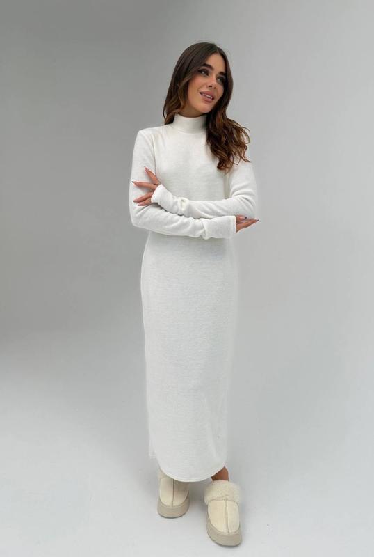 Платье миди однотонное на длинный рукав с поясом приталено качественная стильная белая