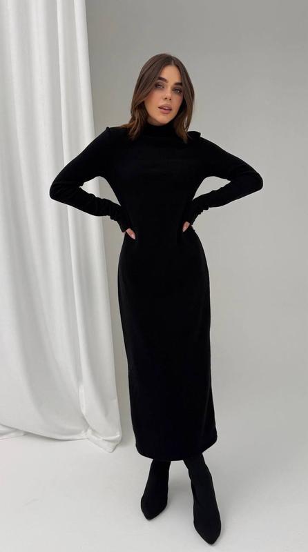 Элегантное трикотажное платье в рубчик черное облегающее платье женское с рукавом теплое платье с начесом