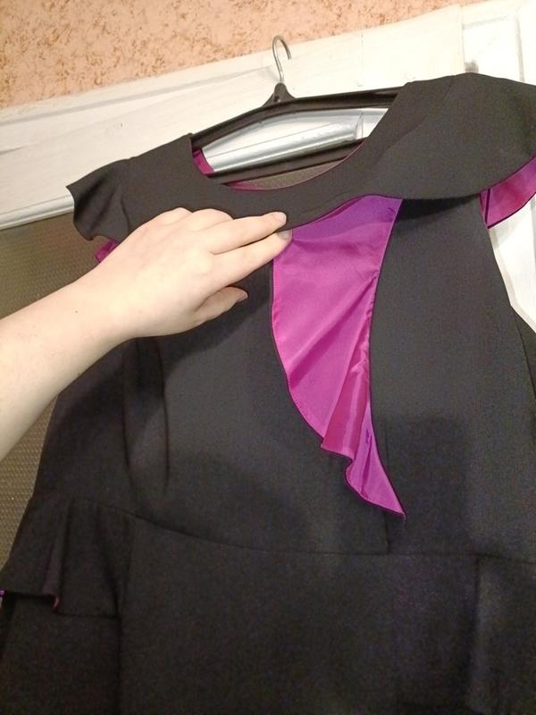 маленькое черное платье. асимметричное. с пере по разному волан от рукава. не тянется. хорошо подчеркнет и скроет недостаткиразмер 20длина 95смпог 56-58пот 52пос 62
