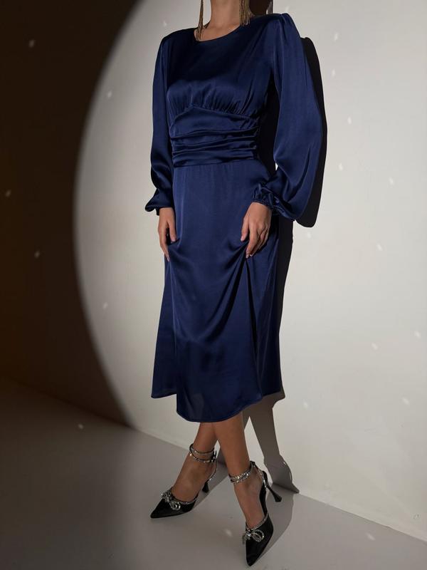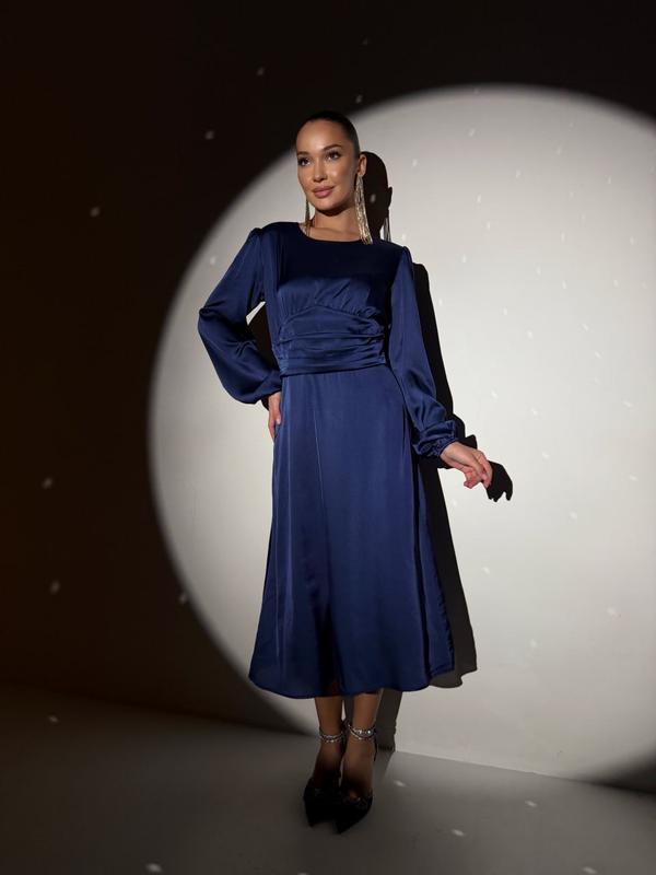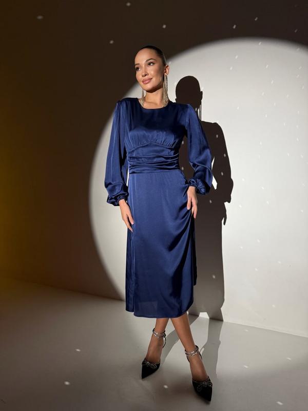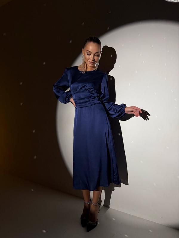 СукняАрт. SV 582Тканина: шовкЦвета: черный, синий, зеленый, бордо, моккоРазмеры: S, M, L, XLЦена: 1050 грн.Описание: Трендовое платье миди длины с драпировкой на поясе из шелка. Рукава фонарики, застежка - скрытая молния на спине.