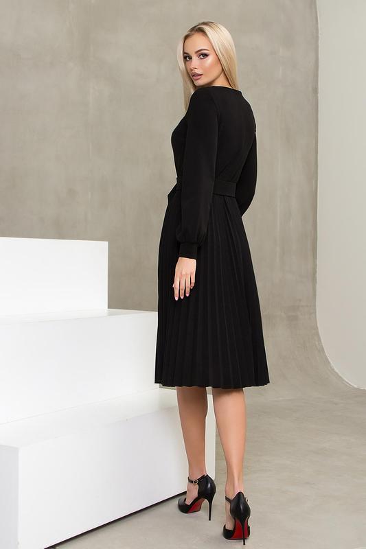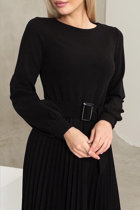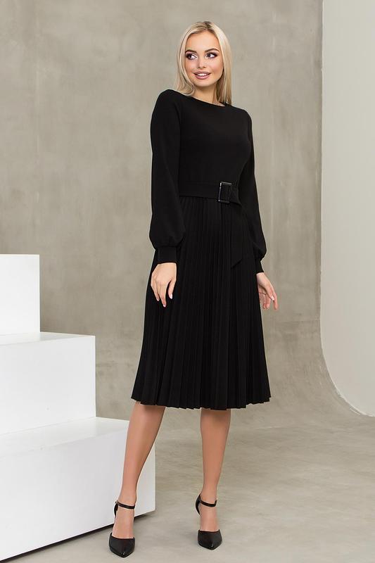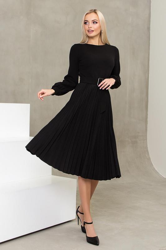 Нарядное платье с плиссированной юбкой спелые из ткани черного цвета.