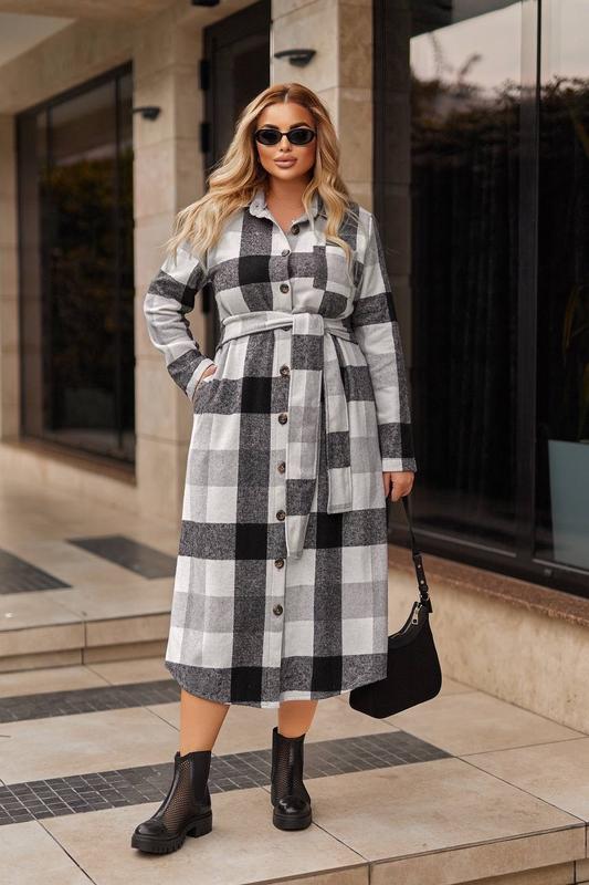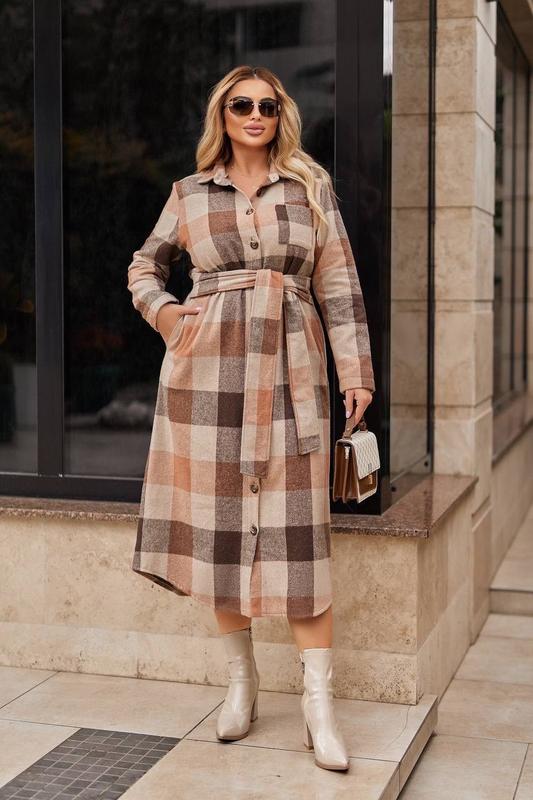 58-60: ОГ – 132 см, ОТ – 132 см, ОБ – 136 см. Длина изделия: 126 см. Длина рукава: 64 см.