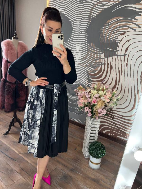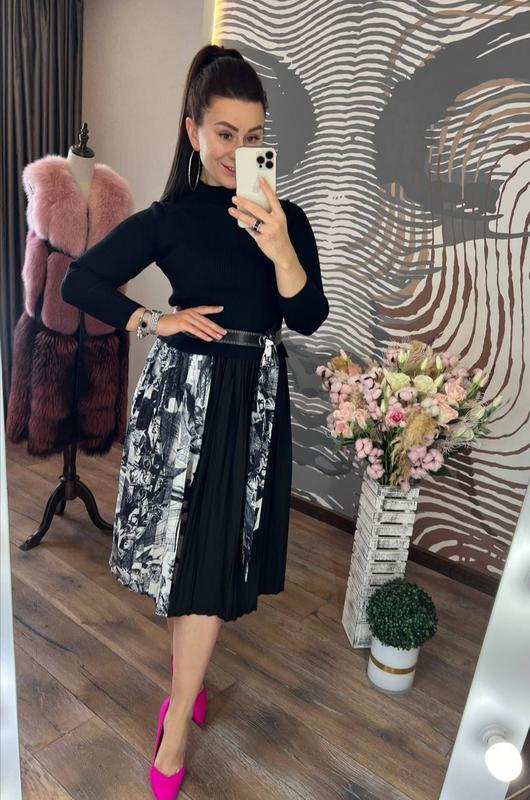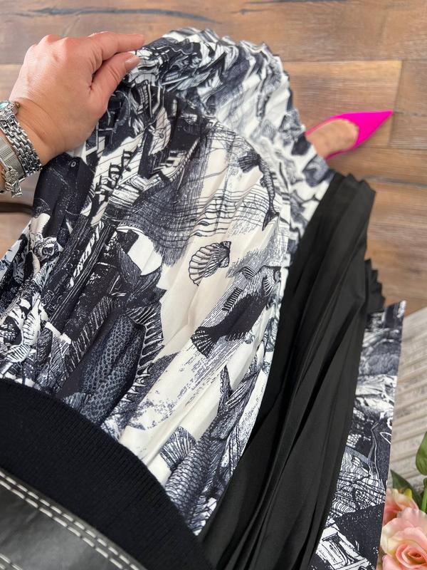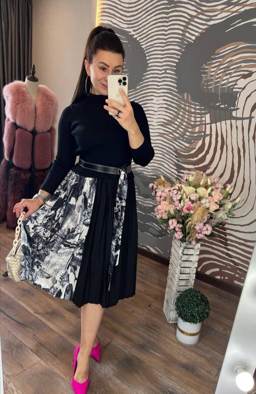 СУККАЯ ВЫГОТОВЛЕНА С УСПЕШНОГО АНСАМБЛЯ ТРИКОТАЖУ МАШИННОЙ ВЯЗКИ И СПИДНИКЕ ПЛИСЕ С КАЧЕСТВЕННОГО КРЕП АТЛАССА ИЗ ЭЛЕГАНТНЫМ МАЛЮНКОМ, ОРИГИНАЛЬНЫЙ ПОПОТРЕБЛЯЕТ ВЗ