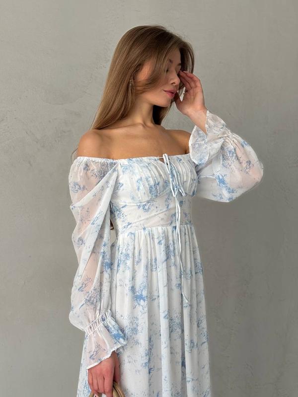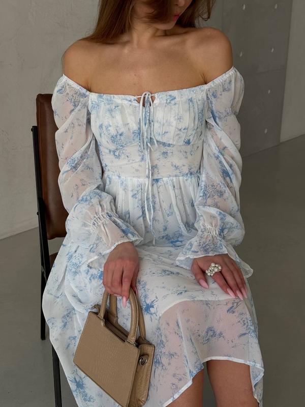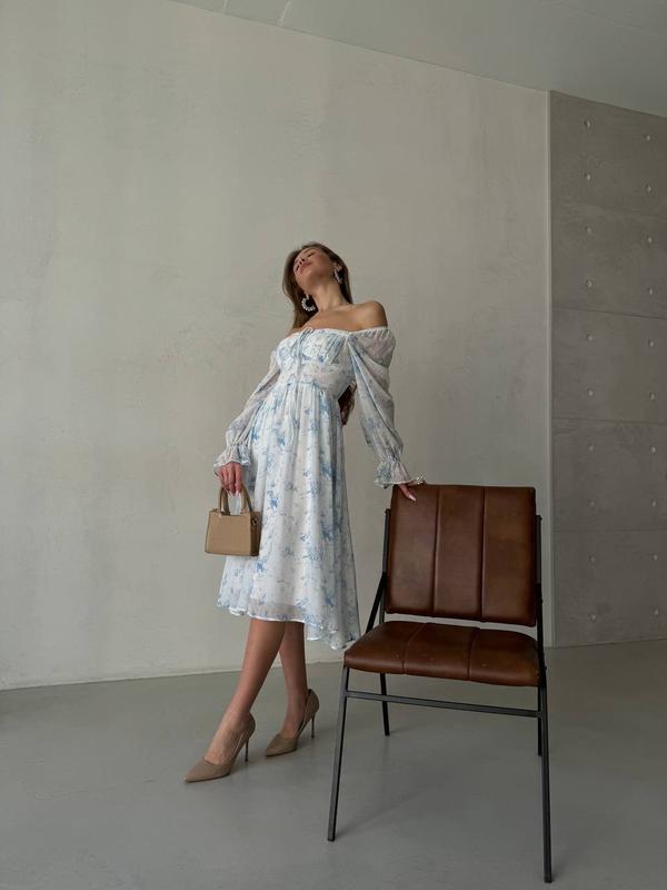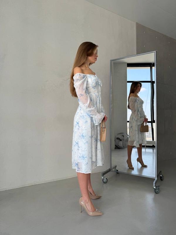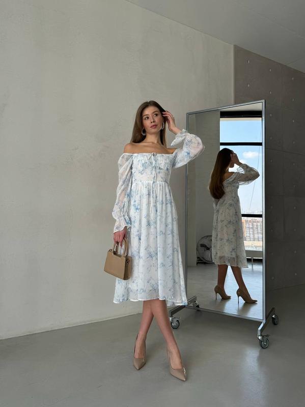 Воздушное платье с открытыми плечами в нежно голубом кольре❤️