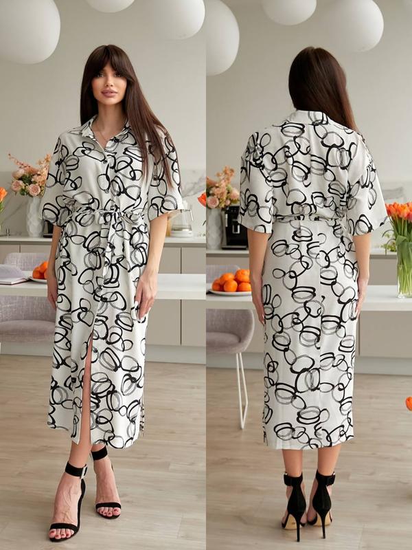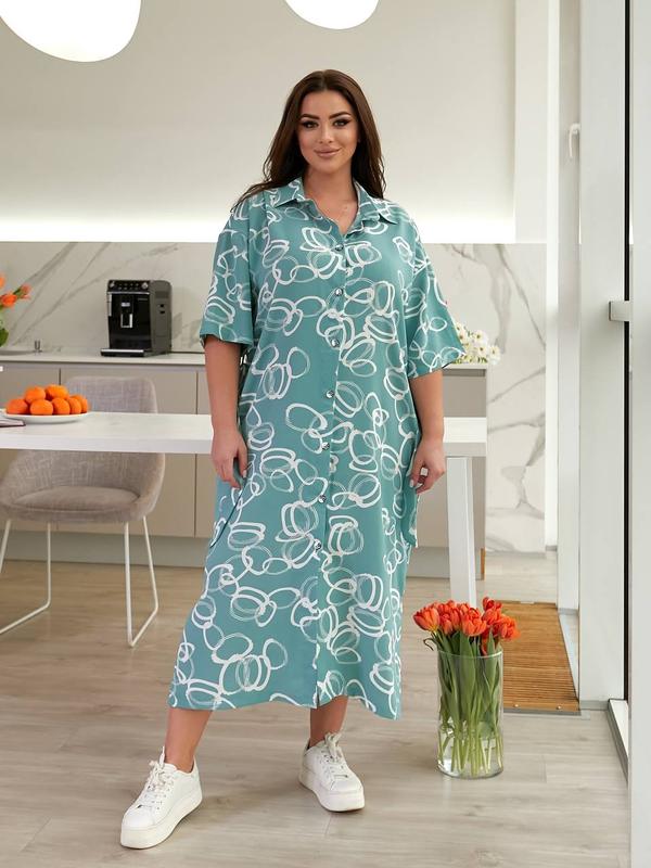 ❤Платье - рубашка миди длины, прямого кроя, рукав 2/3 длины, на талии есть поясок. Пуговицы все рабочие.