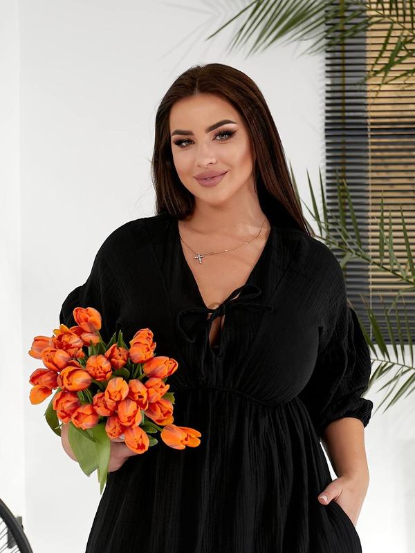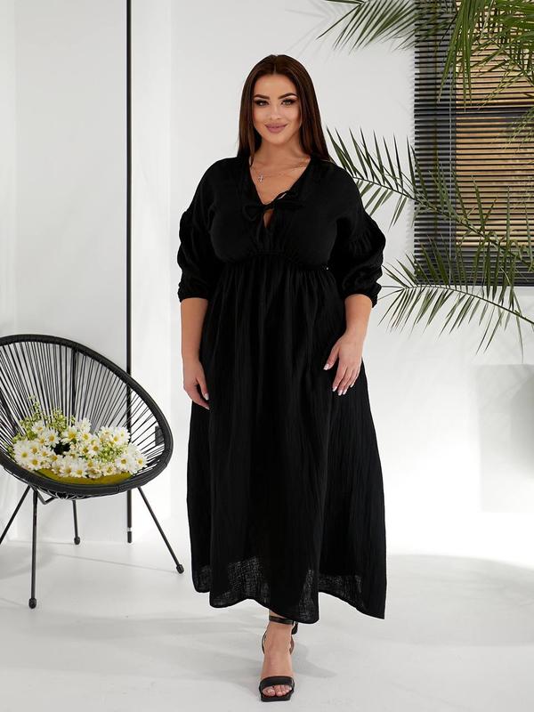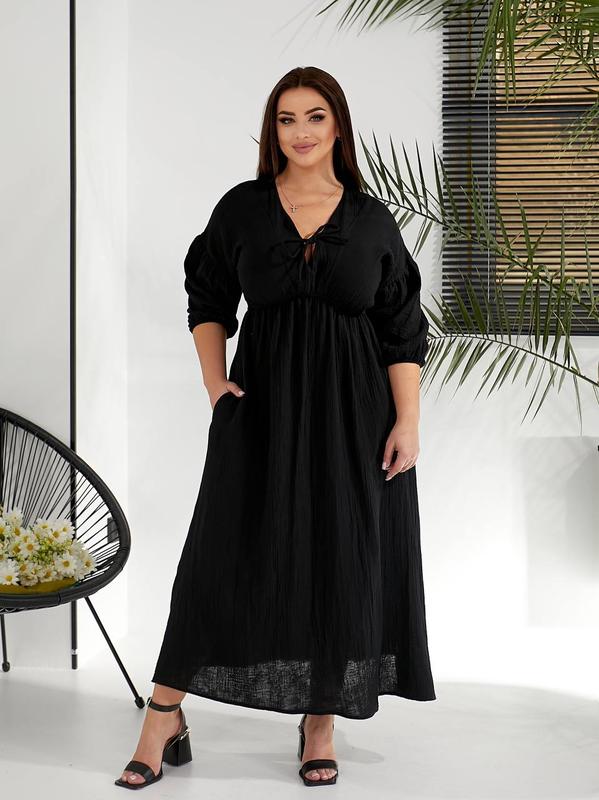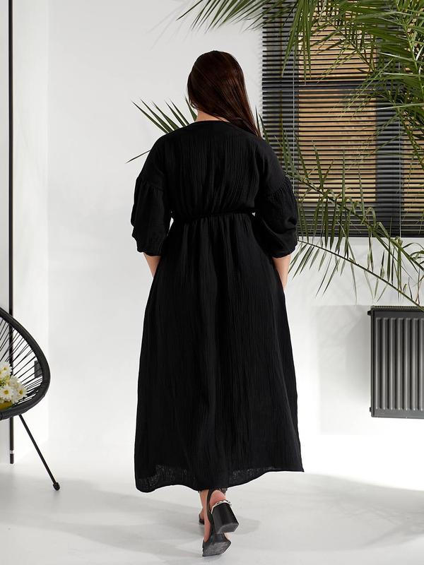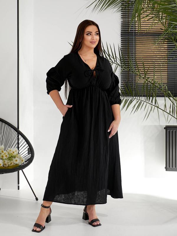 👗Длинное платье миди, рукав 2/3, талия завышена, по бокам карманы. Манжеты рукава на резинке