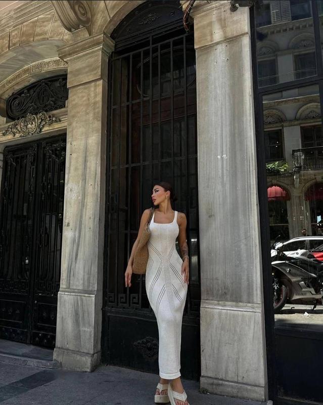 Трикотажна сукня міді з м'якого та приємного на дотик трикотажу. Ефектно моделює силует. • Розмір універсальний • Довжина 126 см • ОГ : 80-96 см • ОТ : 50-80 см • Об : 80-108 см 70061 Q