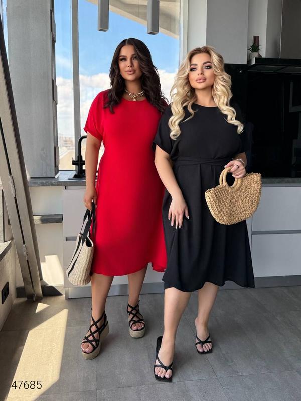 ❗️❗️❗️Перед оформлением заказ уточняйте, пожалуйста, наличие вашего размера. Срок отправки от 2 до 7 дней Новой или Укр-почтой. Вдалих покупок❤️ Платье миди с коротким рукавом. Пояс регулируется. Ткань: американский креп Цвета: черный, красный, голубой, зеленый Замеры: 48-54: ОГ: 100-122 см, ОБ: до 150 см. 56-62: ОГ: 120-142 см, ОБ: до 155 см. Длина рукава: 33 см.