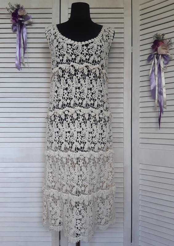 Ажурное, вязанное платье миди кроше, айвори в этно, бохо стиле l'affaire