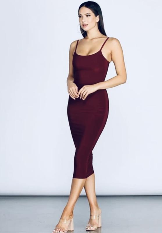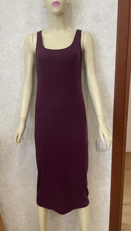 Актуальное платье майка миди лапша в рубчик глубокого ежевичного цвета!