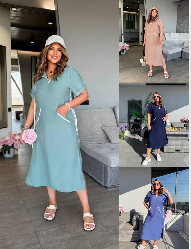 Сукня ✨ Размеры: 1 (48-50) - ОГ 108, ОБ 122 2 (52-54) - ОГ 116, ОБ 130 3 (56-58) - ОГ 122, ОБ 140 👗 Модель: ▫️Тканина: лен структурований ▫️ Длина по спинке - 115см ▫️ Рукав - 24 см 💫 Легкая, женстве нная, с акцентом на удобство и стиль - идеальна для жарких дней!