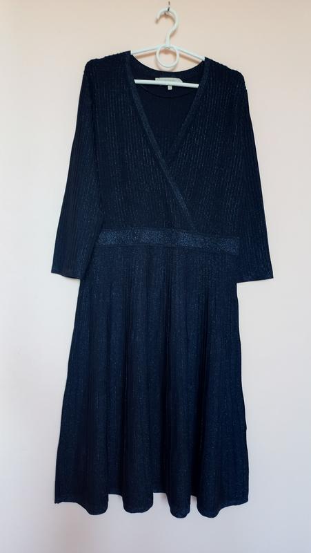 Темно синя святкова трикотажна сукня з люрексом, тёмно синее нарядное платье трикотаж с лю...