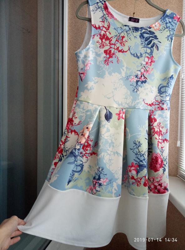 Красивое летнее платье миди из плотного трикотажа в цветочный принт. Указан размер 14, но отлично подойдет и на размер 12. Идеальное состояние, без дефектов.