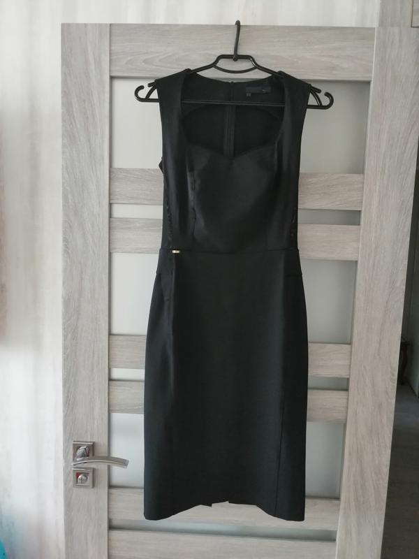 Классическое чёрное платье, отлично подойдёт на работу в офис, красивый вырез, по бокам вставки сеточка, размер s, замерыДлина 101смПОГ 42смПОТ 32смПОБ 44см