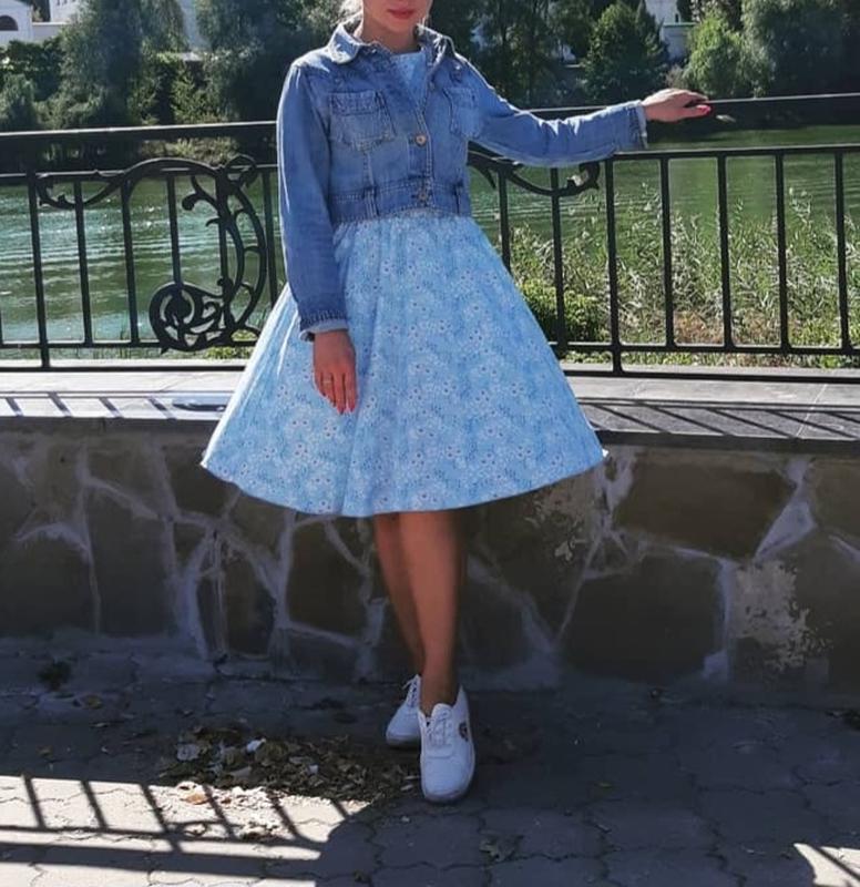 Платье будет выглядеть, как с белыми кедами (кроссовками), так и с обувью на высоком каблуке)