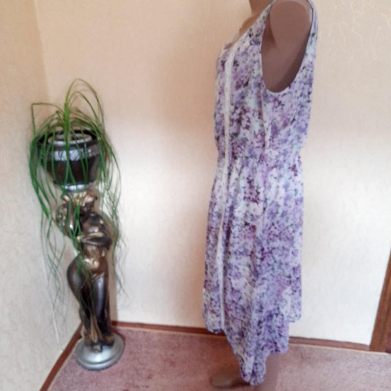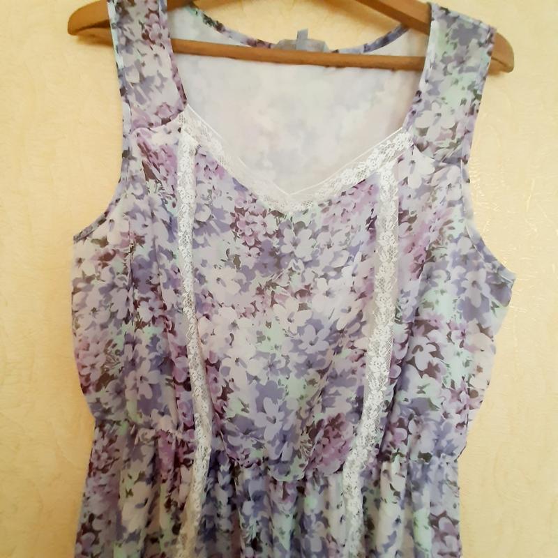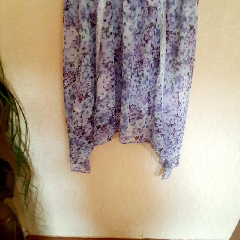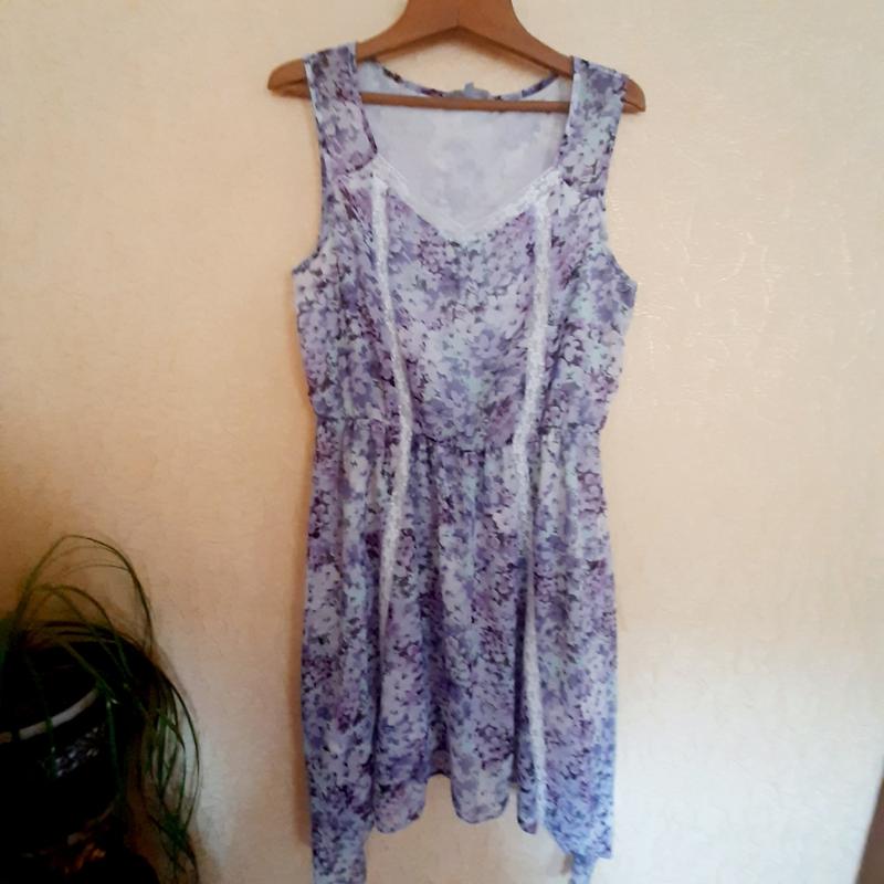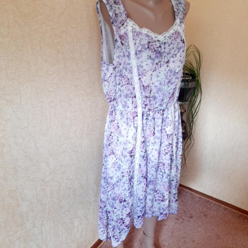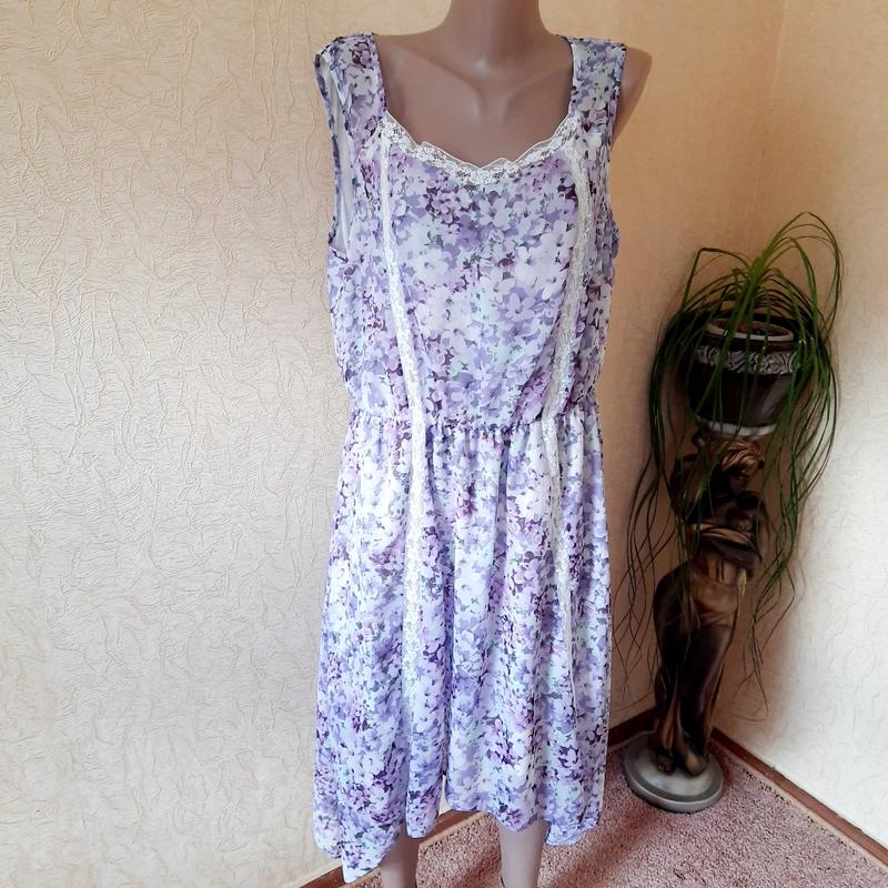 Гегкое воздушное платье на подкладе с гипюровыми вставками и с приспушеными боками.