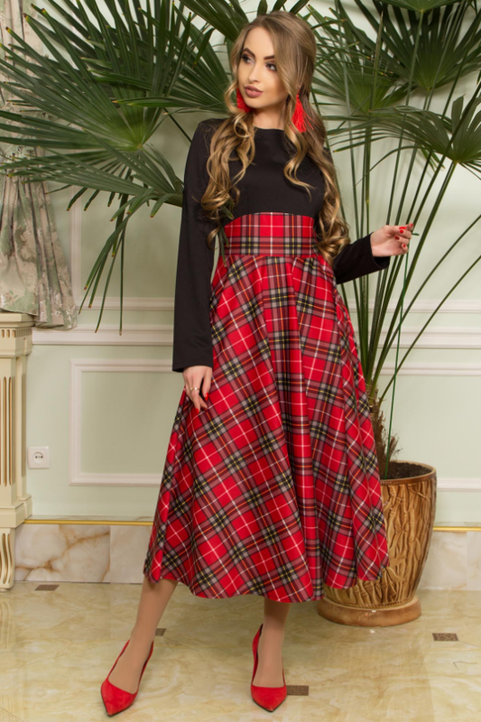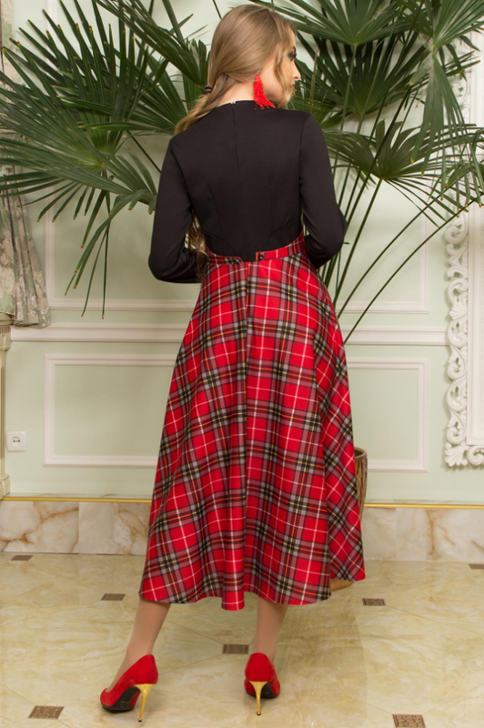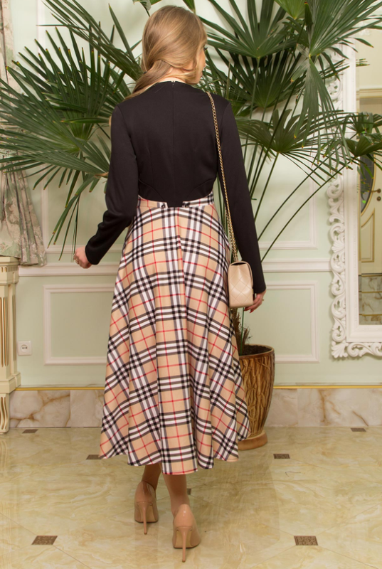 Изделие отрезное по линии талии с расклешенной юбкой.