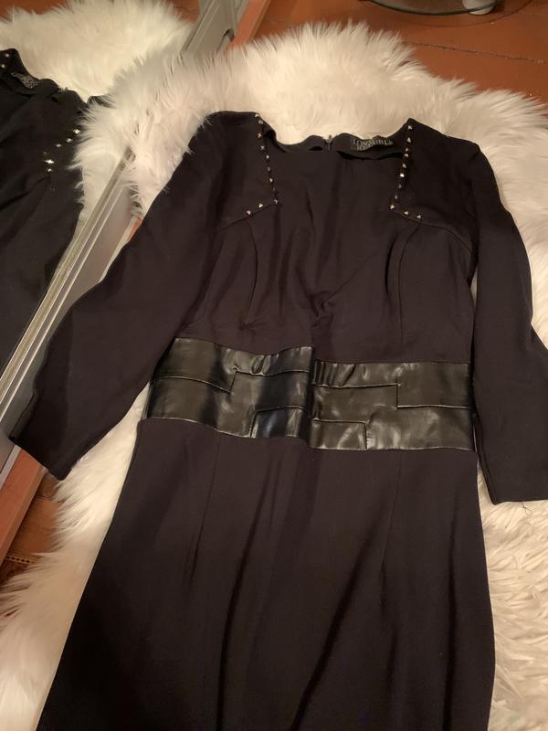 Платье садиться по фигуре👗 актуальный вырез в этом сезоне! Кожаная вставка 😍 , которая очень красиво прорисовывает талию💕