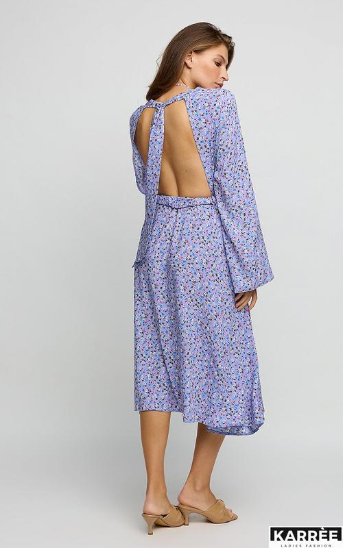 Платье длины миди из легкого штапеля, длинный расклешенный рукав, открытая спина, на талии резинка, на спине длинные завязки