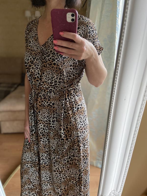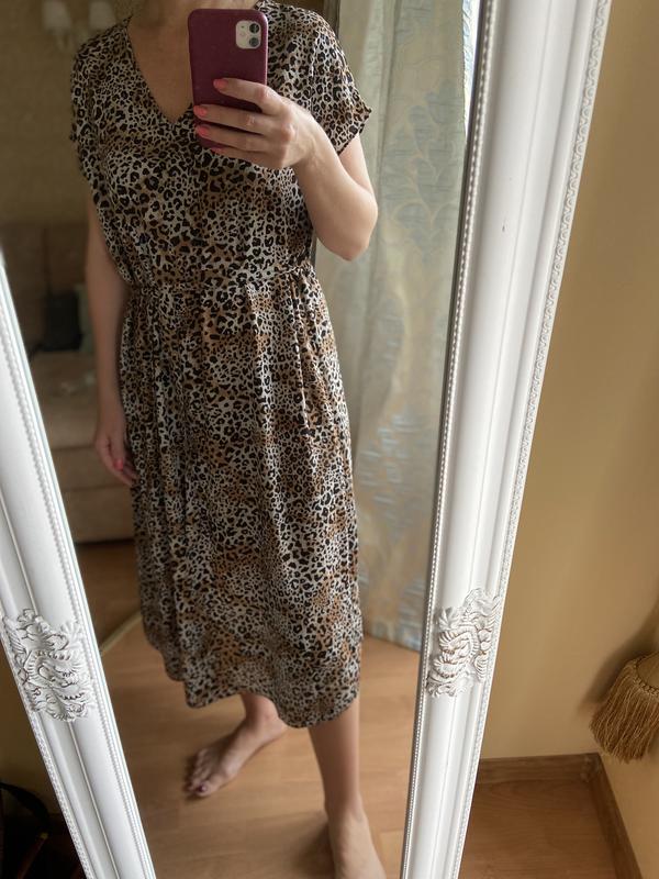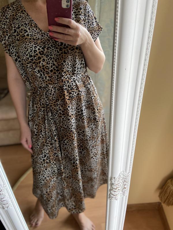 Женское летнее платье миди лео, женское платье леопардовое, леопардовое платье