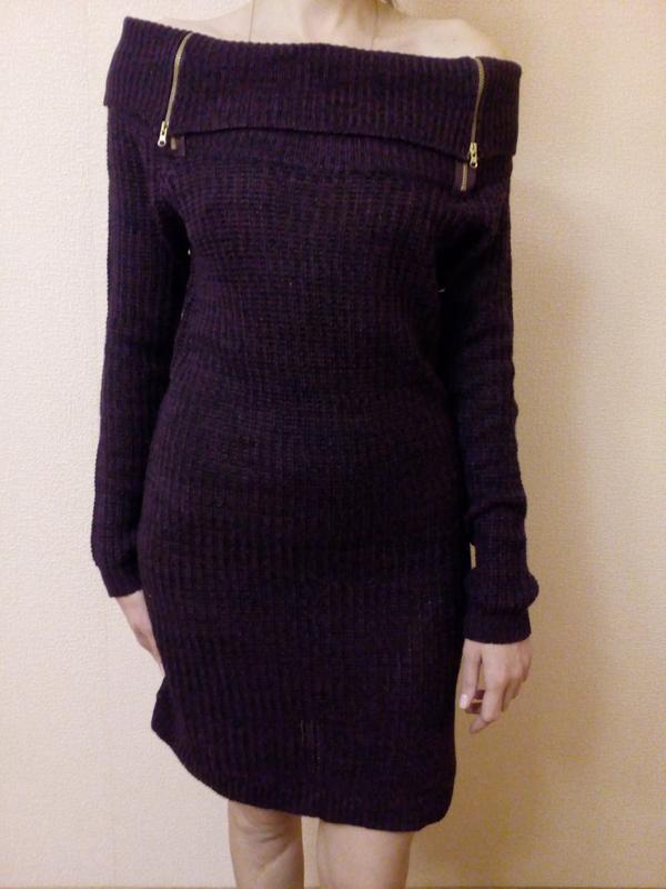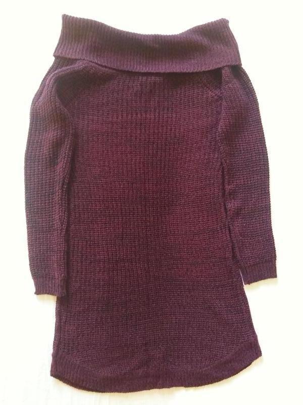 Вязаное платье по фигуре Derek Heart с открытыми плечами бордового цвета.Широкий ворот и длинный рукав.