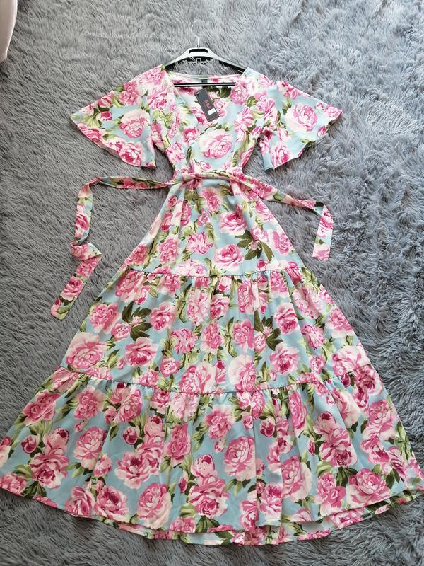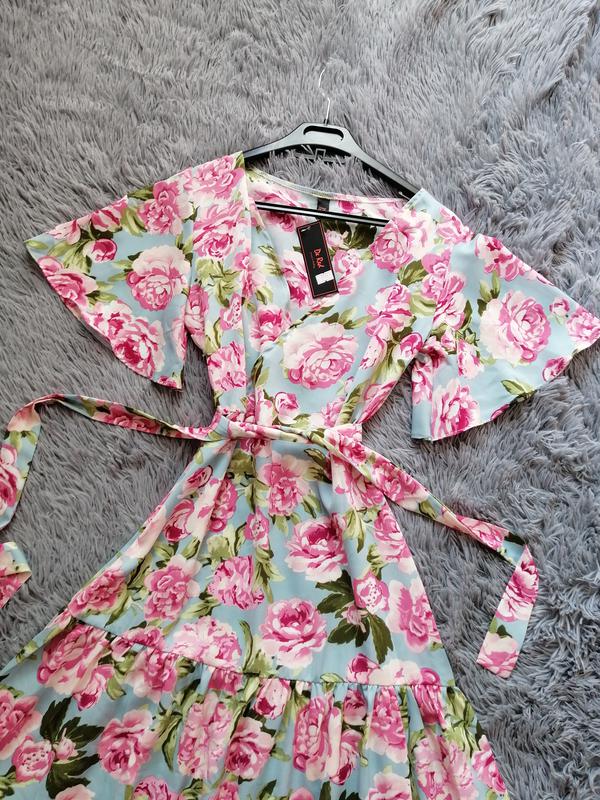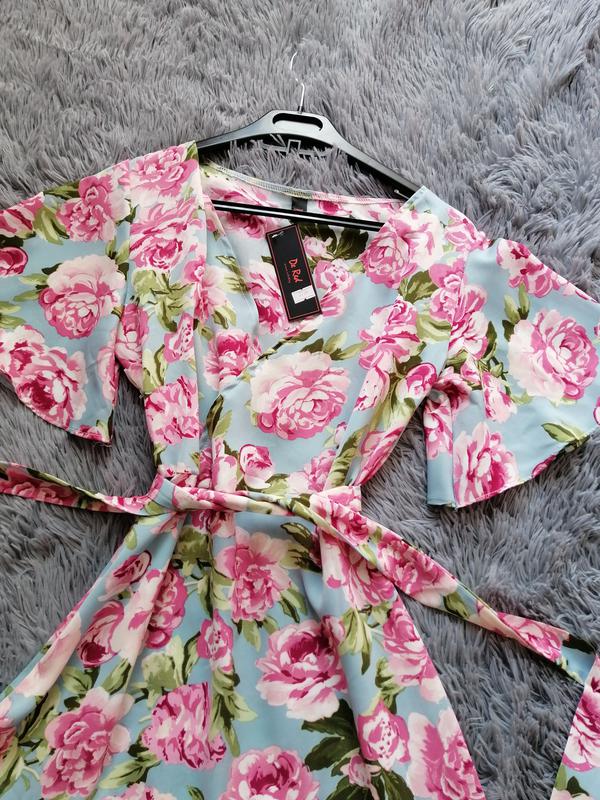 Платье миди цветочный принт разные цвета эффект запаха с поясом