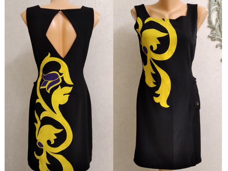 Эффектнейшее платье-футляр с аппликацией в стиле Версаче!!! На подкладке. Застежка-молния в боковом шве. Аппликация спереди и на спинке - бомба!! На спинке - оригинальный вырез! Очень качественное (пр-ва Турции).
