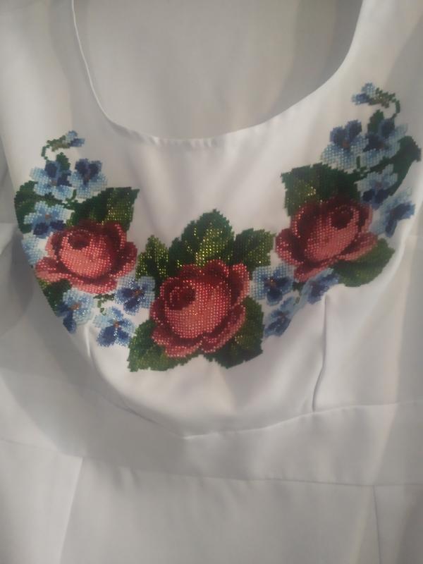 Шикарное красивое платье вышиванка модное стильное трендовое вышитое белое