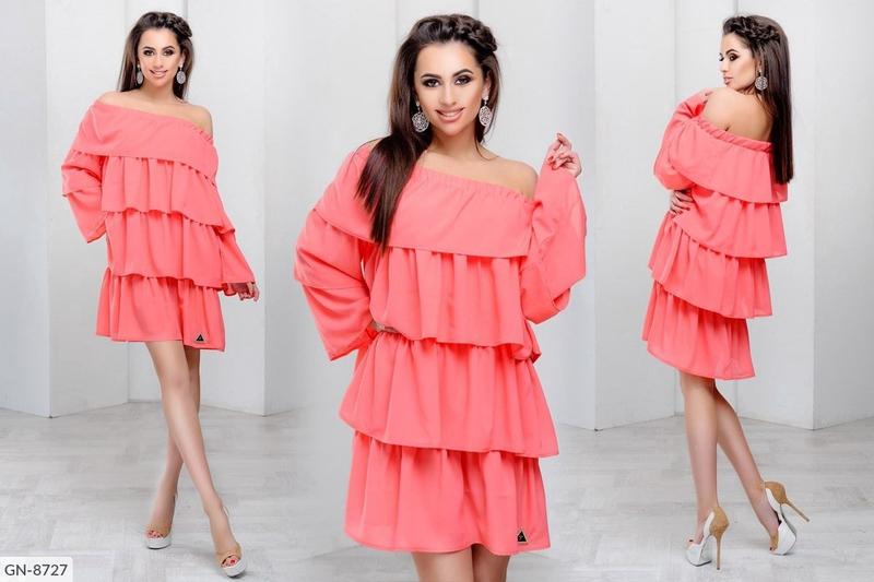 Платье GN-8727065Размеры: 42-44, 44-46Ткань: креп шифон.Цвета:коралл,чёрный, бирюза.