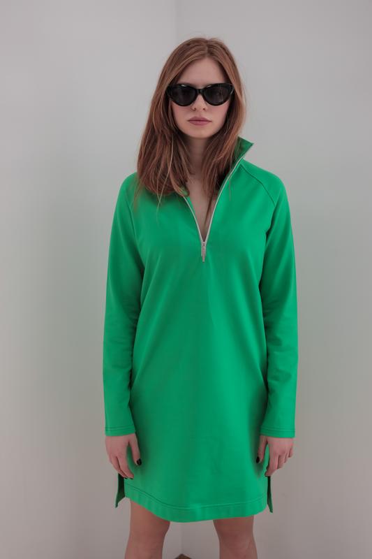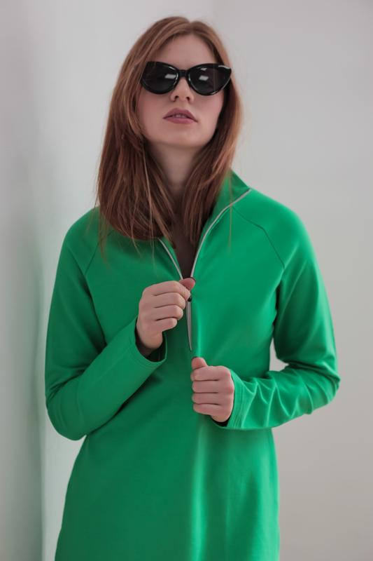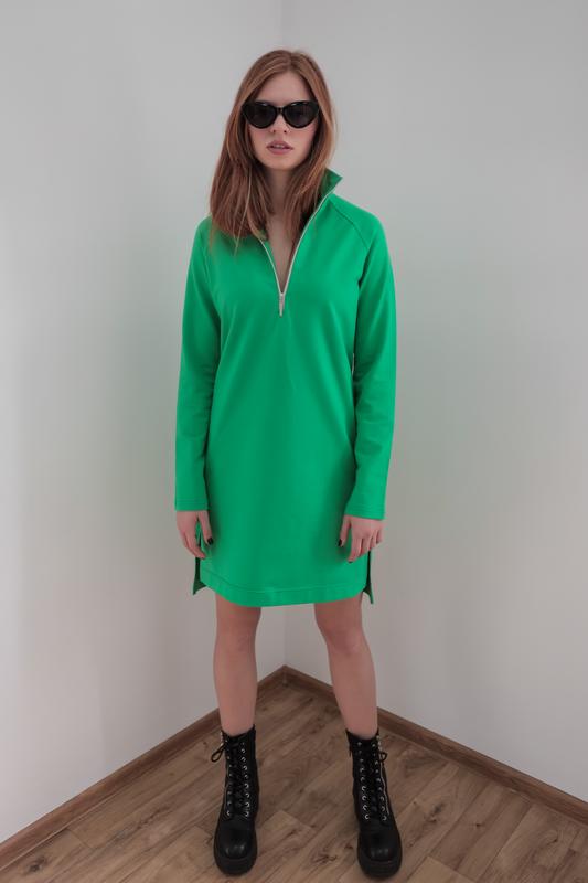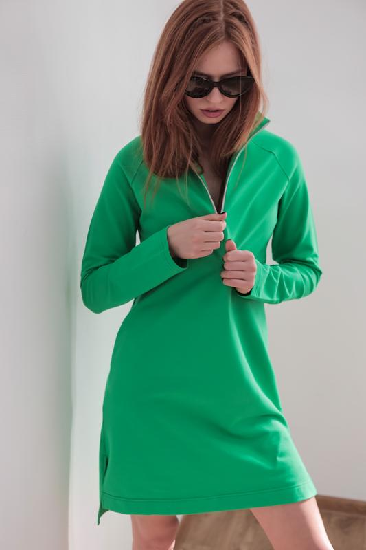 Трикотажна сукня спортивного стилю із довгими рукавами-регланами, спинка трохи подовжена