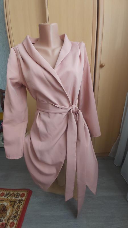 сукня на запах приглушоно бежево-рожевого кольору з паском, з тканини середньої щільності, в ідеальному стані, без нюансів, довжина 86 см, довжина рукава 58 см, півобхват груди 42 см, півобхват талії 38 см, півобхват стегон 50 см, півобхвати можуть мінятися в залежності від ступеня запаху, відправлю за попередньою оплатою або безпечною доставкою