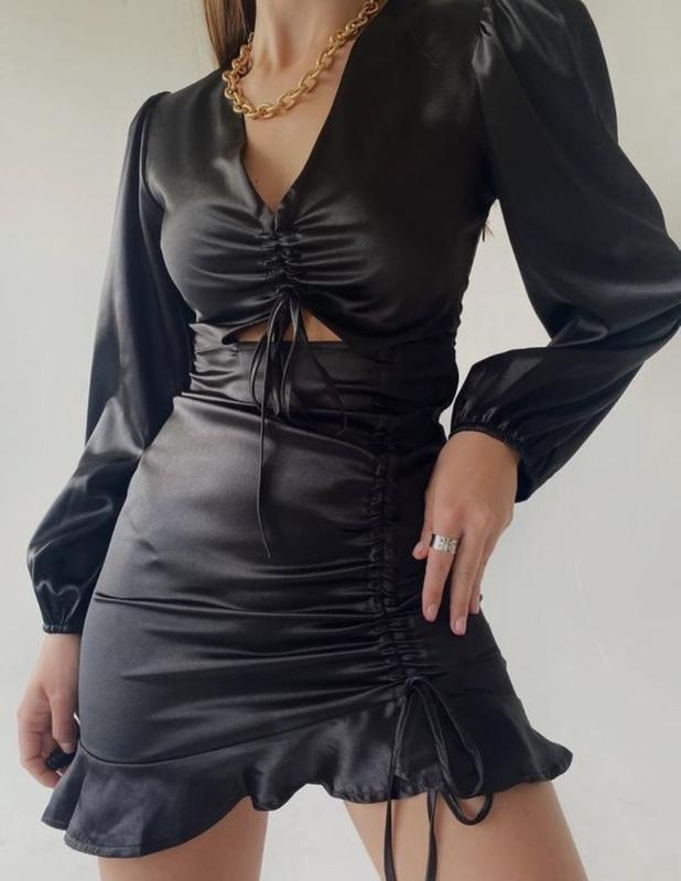 Платье в черном цвете 👗• материал: атлас•размір: s• длина: 85смНе подходит размер