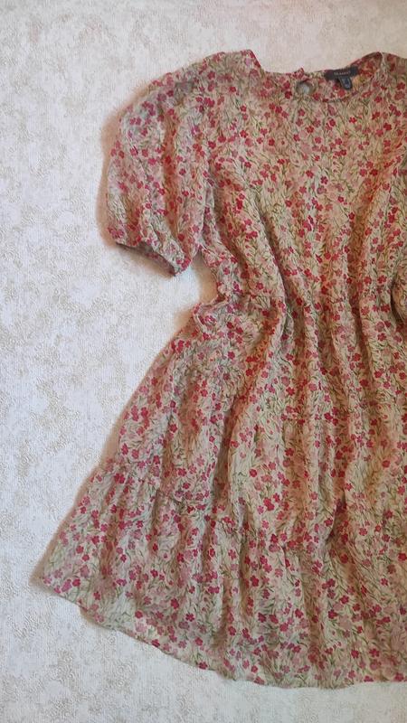 Воздушное ярусное платье с подкладкой. Красивый нежный принт. Приятное к телу. Сзади на пуговке. Состояние отличное