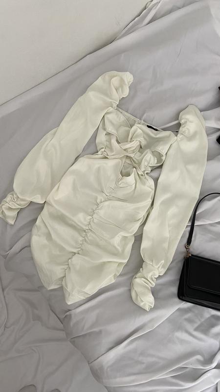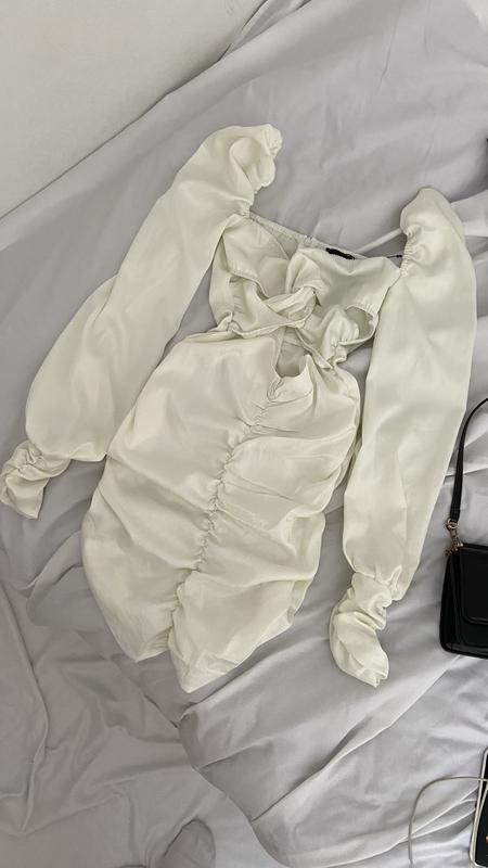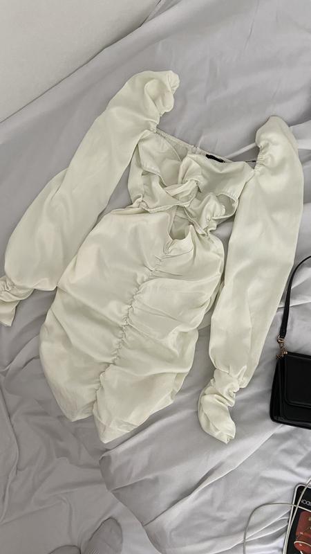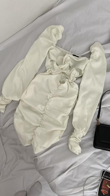 Неймовірна розкошна атласна сукня на зав‘язках колір айворі prettylittlething