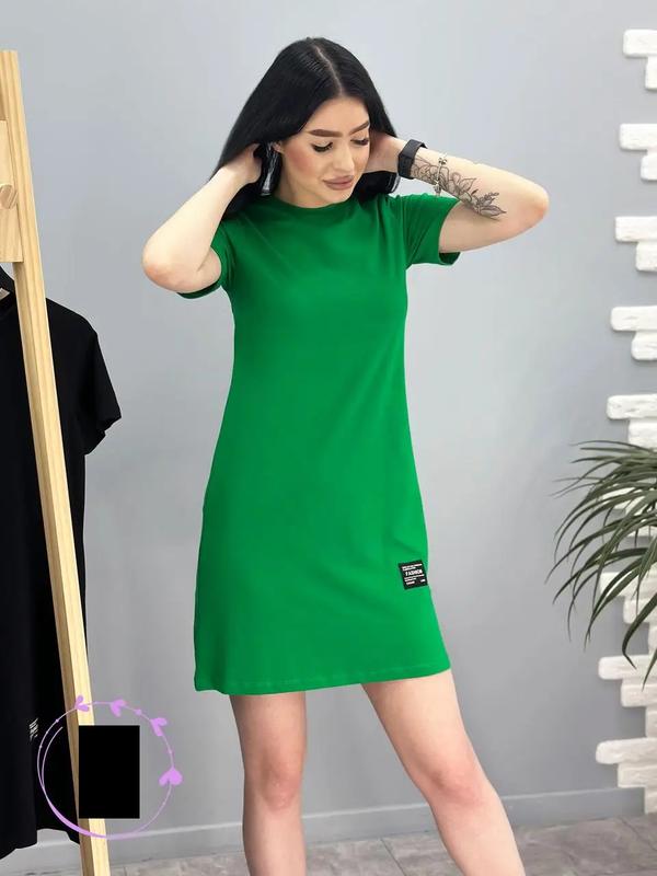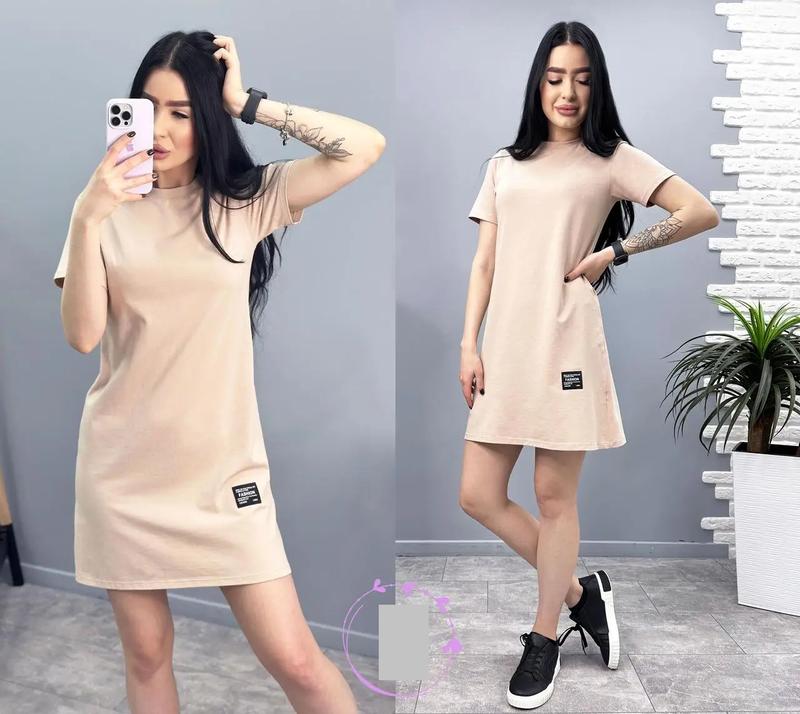 - прямой крой, фасон – платье-футболка, короткий вшитый рукав;