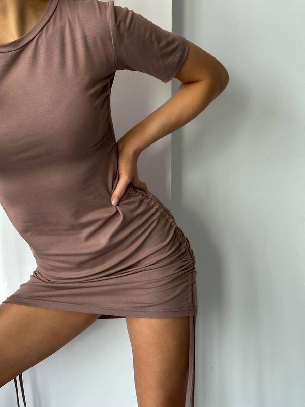 Очень стильное платье на затяжках из качественной Турецкой вискозы. Длину платья можно регулировать.