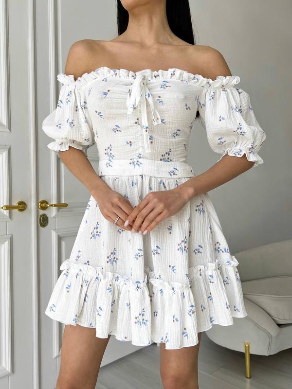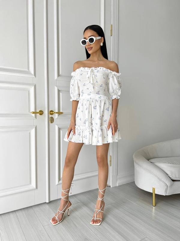 Это платье обладает невероятной легкостью, что придает ему особый шарм и женственность. Линия декольте красиво оформлена рюшей, что придает платья изысканный и утонченный вид.