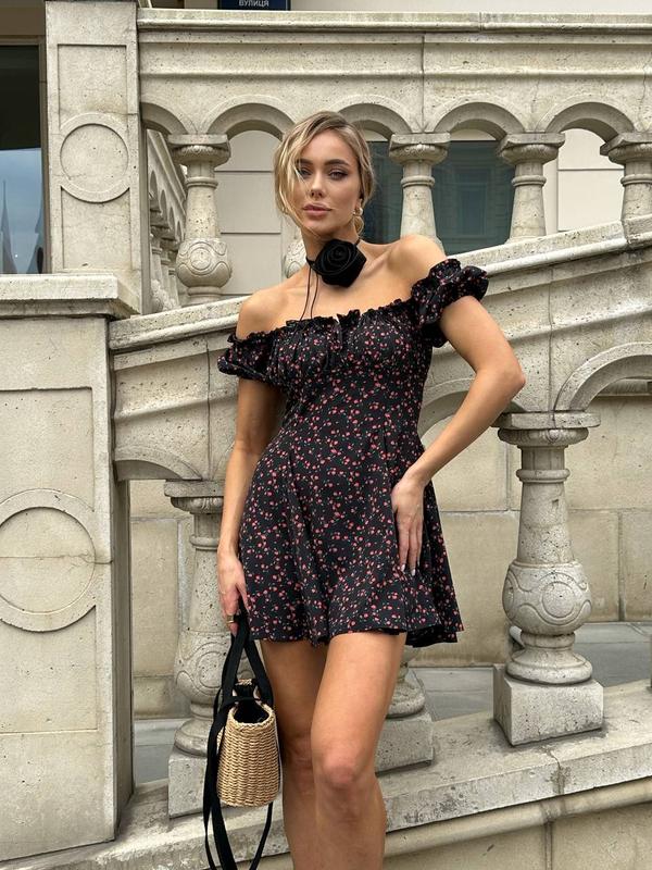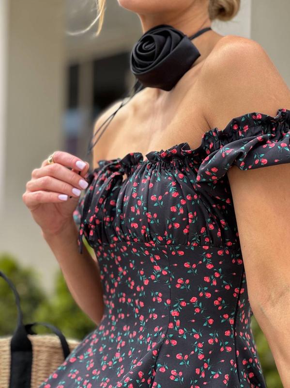 Воздушное необычное цветочное платье мини софт летнее платье с короткими рукавами