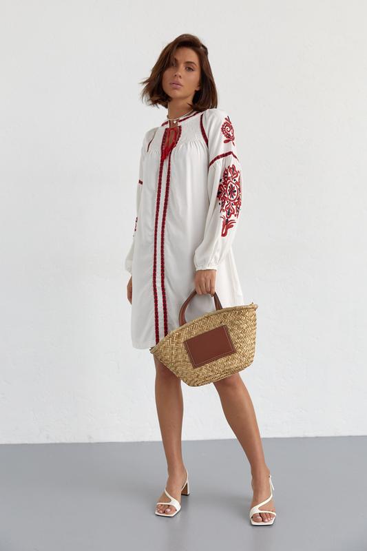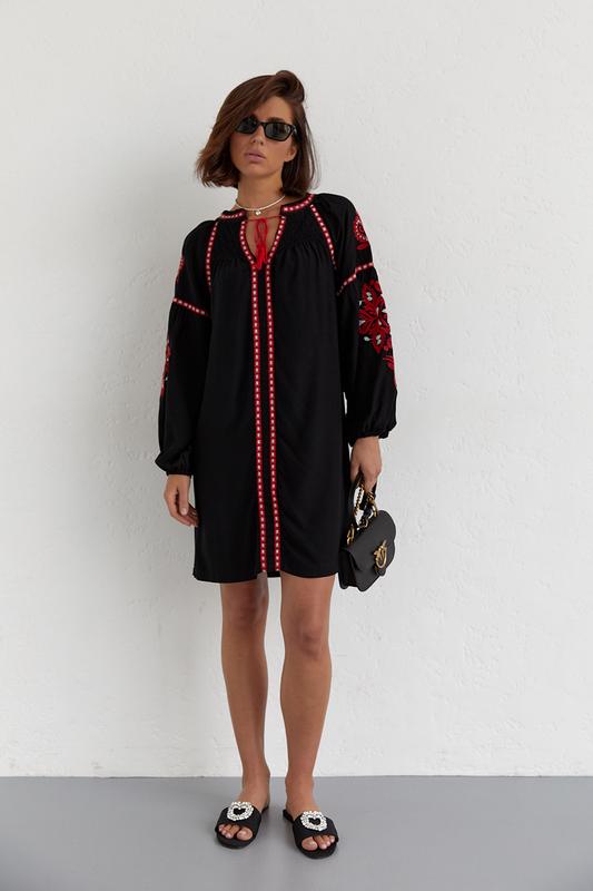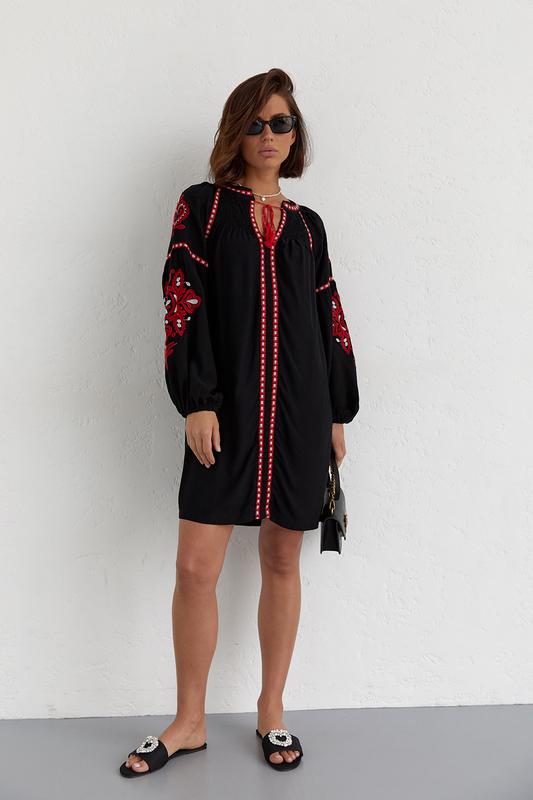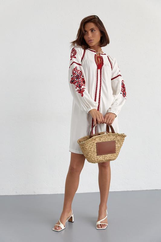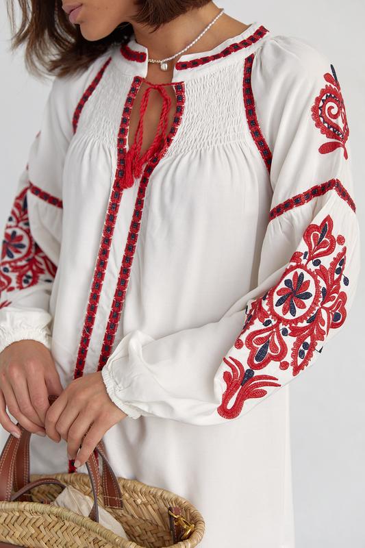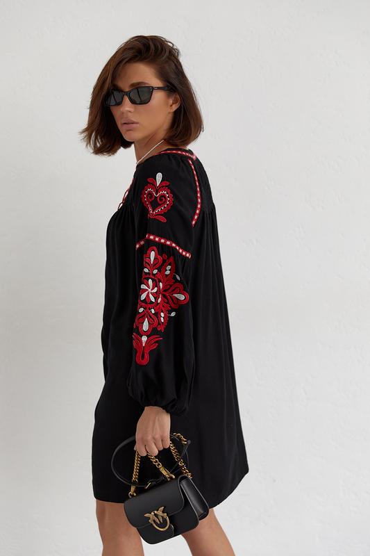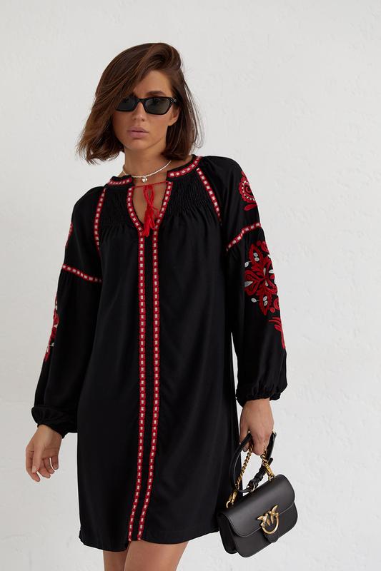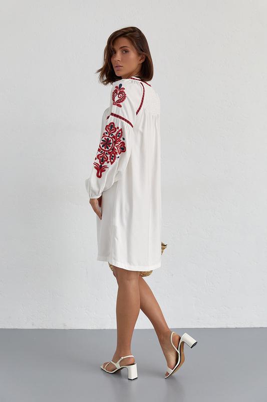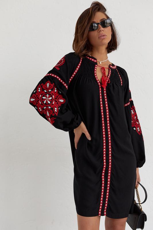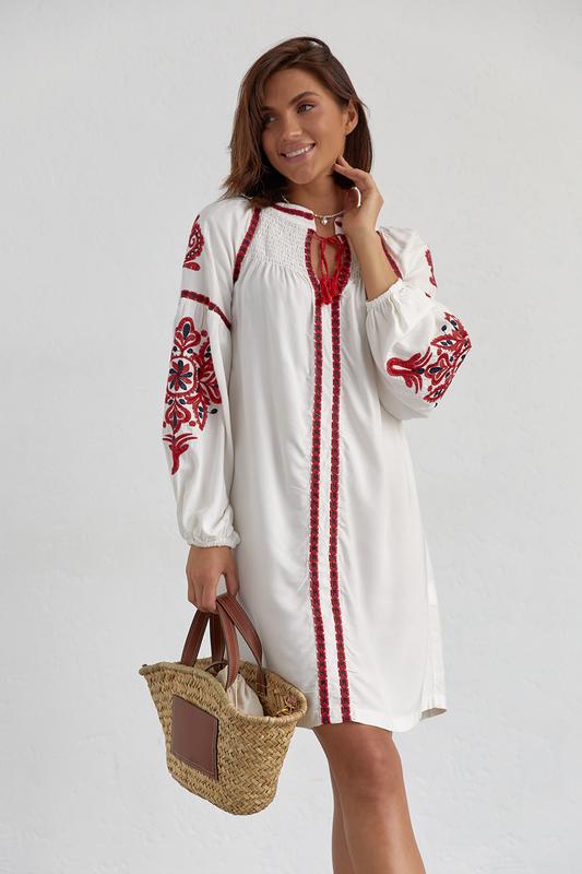 КОРОТКА СУКНЯ-ВЫШИВАНКА С ВИЗЕРУНКАМИ НА РУКАХАХ