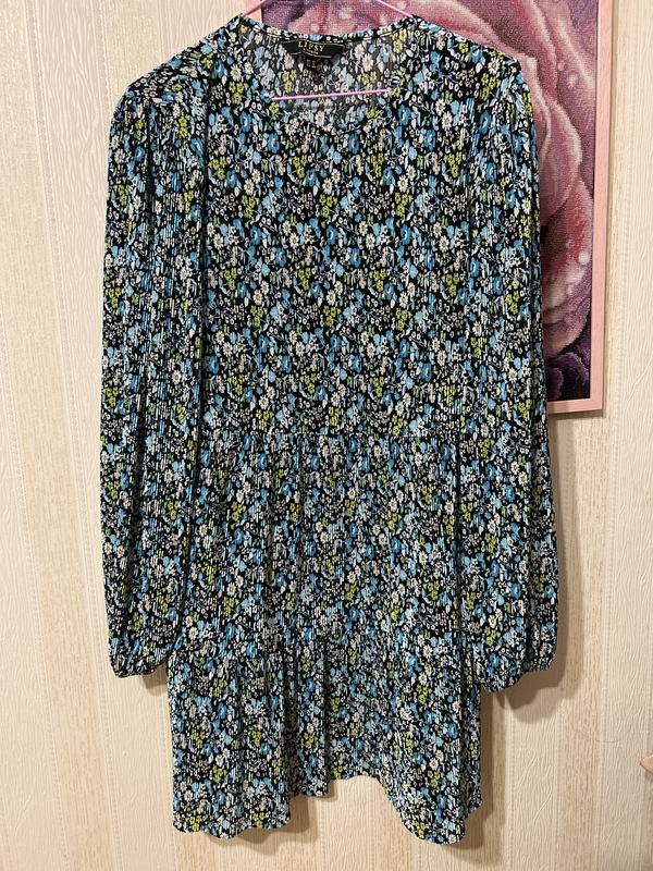 Платье туника женское стильное мелкий плиссе цветочный принт