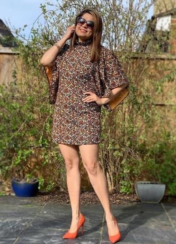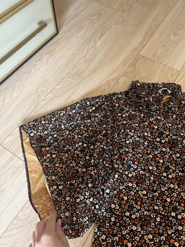 Платье прямого фасона , рукава широкие на оранжевой подкладке , красиво ниспают в стиле кимоно .