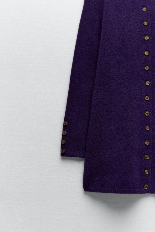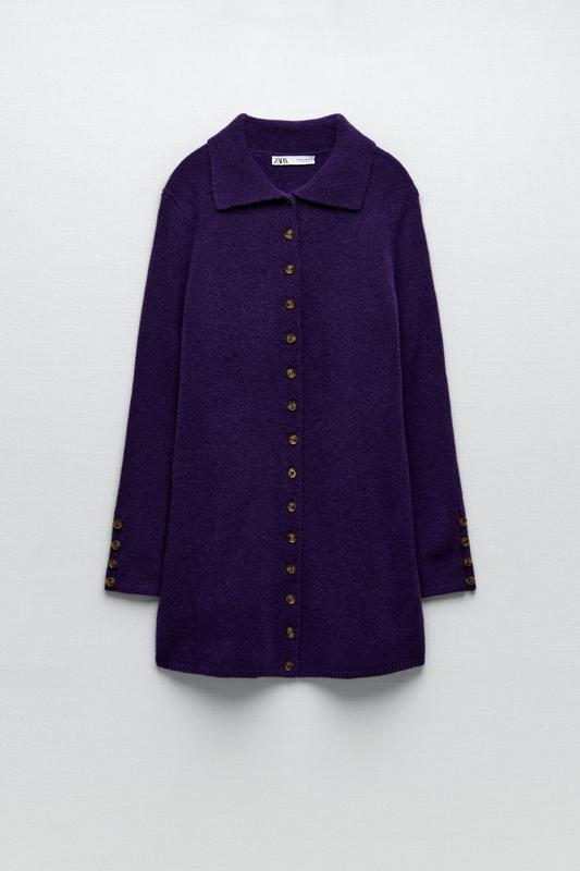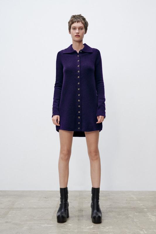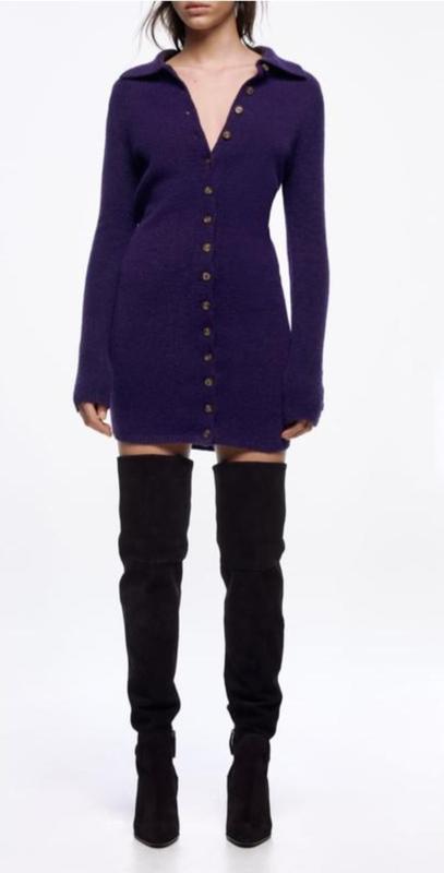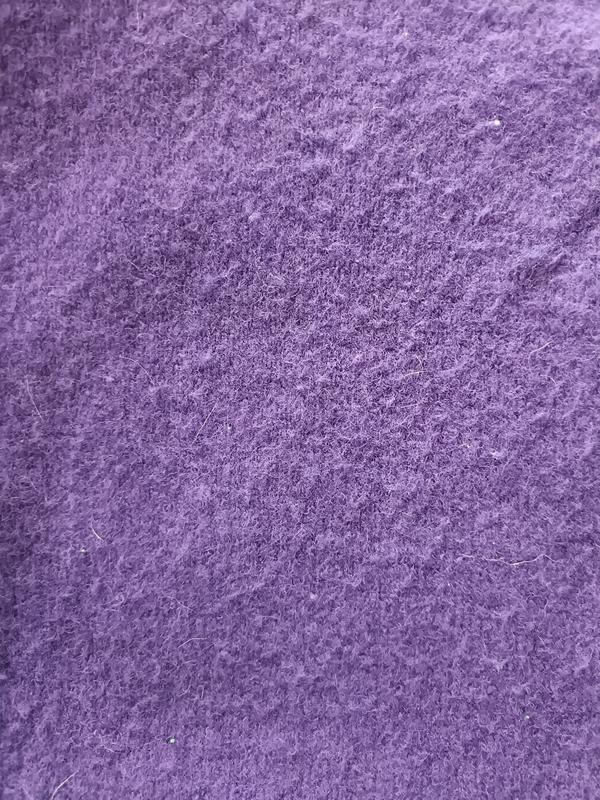 Теплое фиолетовое платье. Стан - 4+. Прямо очевидных катышек нет, однако они уже появляются, трикотаж не выглядит совершенно новым, плюс подмышками уже немного затерлось.