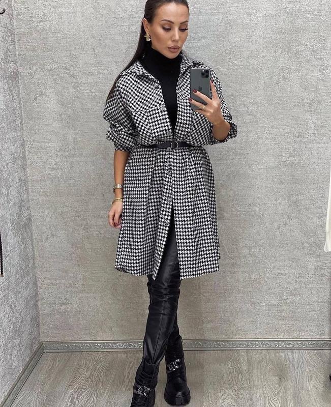 Платье – рубашка Мода RC-15 Размеры 42-46, 48-52, 54-58 Цвет : Клеточка черный и беж Ткань: кашемир трикотаж (пояс в комплекте) Платье – рубашка свободного кроя – это очень удобная и незаменимая вещь. Круто выглядит как под лосины, так и как отдельный элемент вашего гардероба. Приятная, мягкая и очень теплая ткань. Трендовый принт. Пояс идет в комплекте. Пояс может отличаться. При выборе размера учитывайте, что модель должна свободно сидеть!