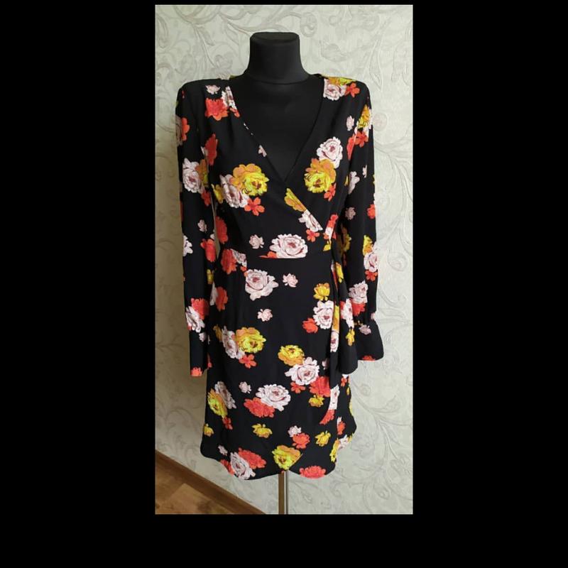 Платье в цветочный принт Primark, размер XS,S, длиж. 84 см, рукав 58 см, талия 34 см, полуобхват, ПРО 49 см полуобхват, полиэстер+эластан