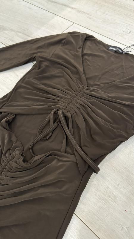 Сукня шоколадно-коричнева облягаюча плаття з мереживом на зав’язках коктельне