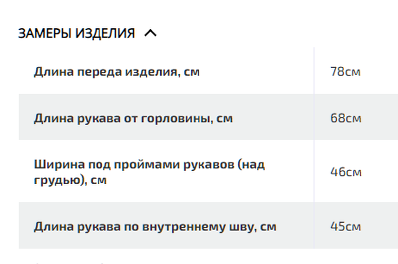 • Универсальность – замеры одинаковы для всех размеров - особенность фасона модели