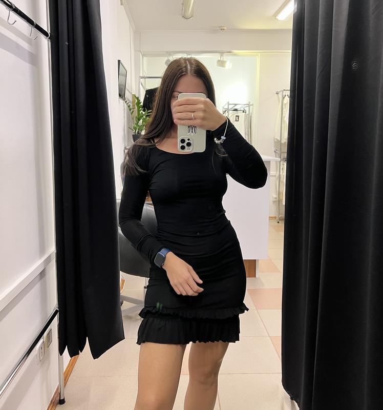 Черное базовое приятное к телу вискозное платье приталенного крояЗамеры: Пог 39, пот 33, поб 38, ткань хорошо тянется. Длина 90, рукав 63